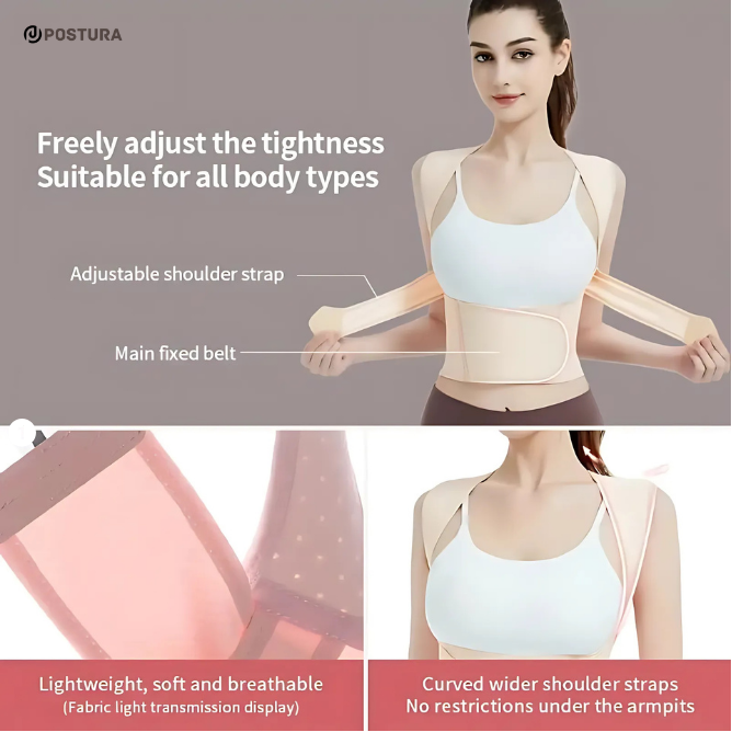 Postura Spine Support Corrector for Men and Women, Shoulder Straightener, Adjustable Full Back Support, Upper and Lower Back Pain Relief