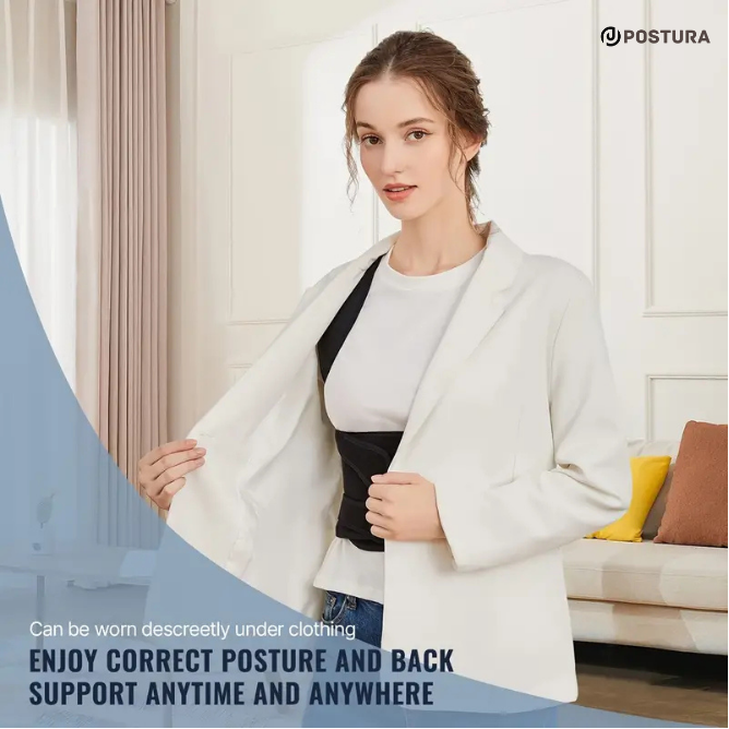 It applies gentle pressure to keep your spine aligned, reducing strain and supporting healthy posture during daily activities.